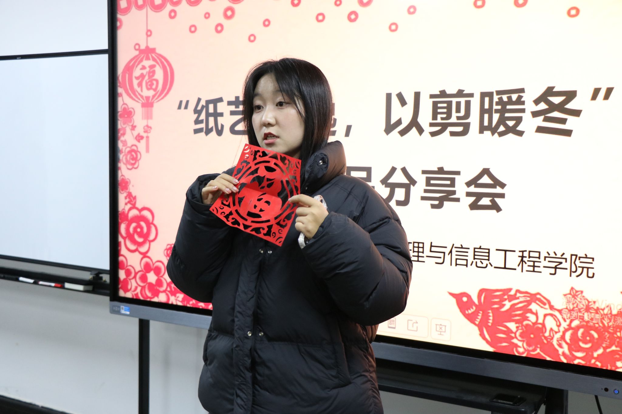 为增强同学们对传统文化的了解,亲身感受其独特魅力,公司文体部于12月8日晚20:00在南区实验楼S202开展了“纸艺飘逸,以剪暖冬”剪纸作品分享会。主席团成员宋研、李星儒,文体部负责人李梓博、郭涛担任评委。本次活动由文体部志愿者任丰旭主持。