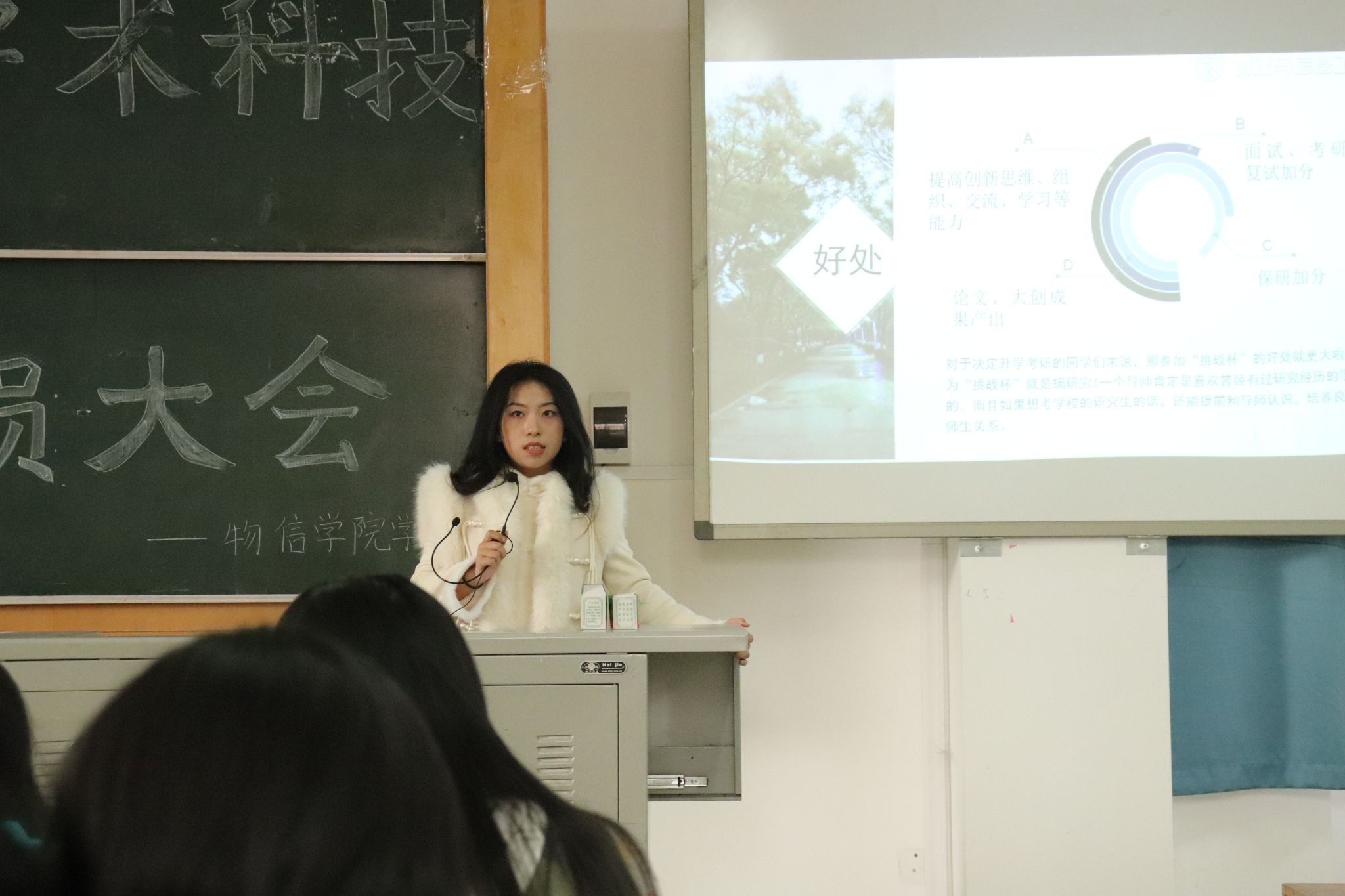 会上,马丽娜向同学们介绍了“挑战杯”老员工课外学术科技作品竞赛的大赛宗旨、参赛对象、竞赛方式、作品要求和组织方式等,使同学们对“挑战杯”有了初步了解和认识。