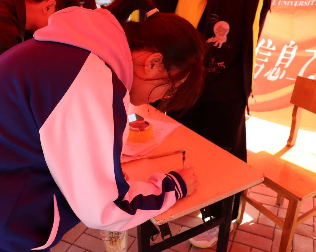 本次活动共分为四种活动形式,分别为心声墙、签名墙、反霸凌知识问答和拍摄反霸凌主题的创意短视频。同学们可以自由选择其中两种活动形式进行参与,活动中,大家在心声墙上写下自己对反霸凌的看法和建议,共同为创建和谐校园出一份力;并且在签名墙上签名,加强反霸凌的决心;还有部分同学参与反霸凌知识问答,学习遇到霸凌事件时正确的处理方法。