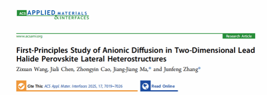 这项研究成果题为“First-Principles Study of Anionic Diffusion in Two-Dimensional Lead Halide Perovskite Lateral Heterostructures”,发表在《ACS Applied Materials & Interfaces》[ACS Appl. Mater. Interfaces 2025, 17, 7019−7026]。公司22级硕士研究生王子璇是论文第一作者,马江将副教授和海南师范大学的张均锋教授为共同通讯作者。该工作得到了国家自然科学基金、山西省自然科学基金项目的资助。