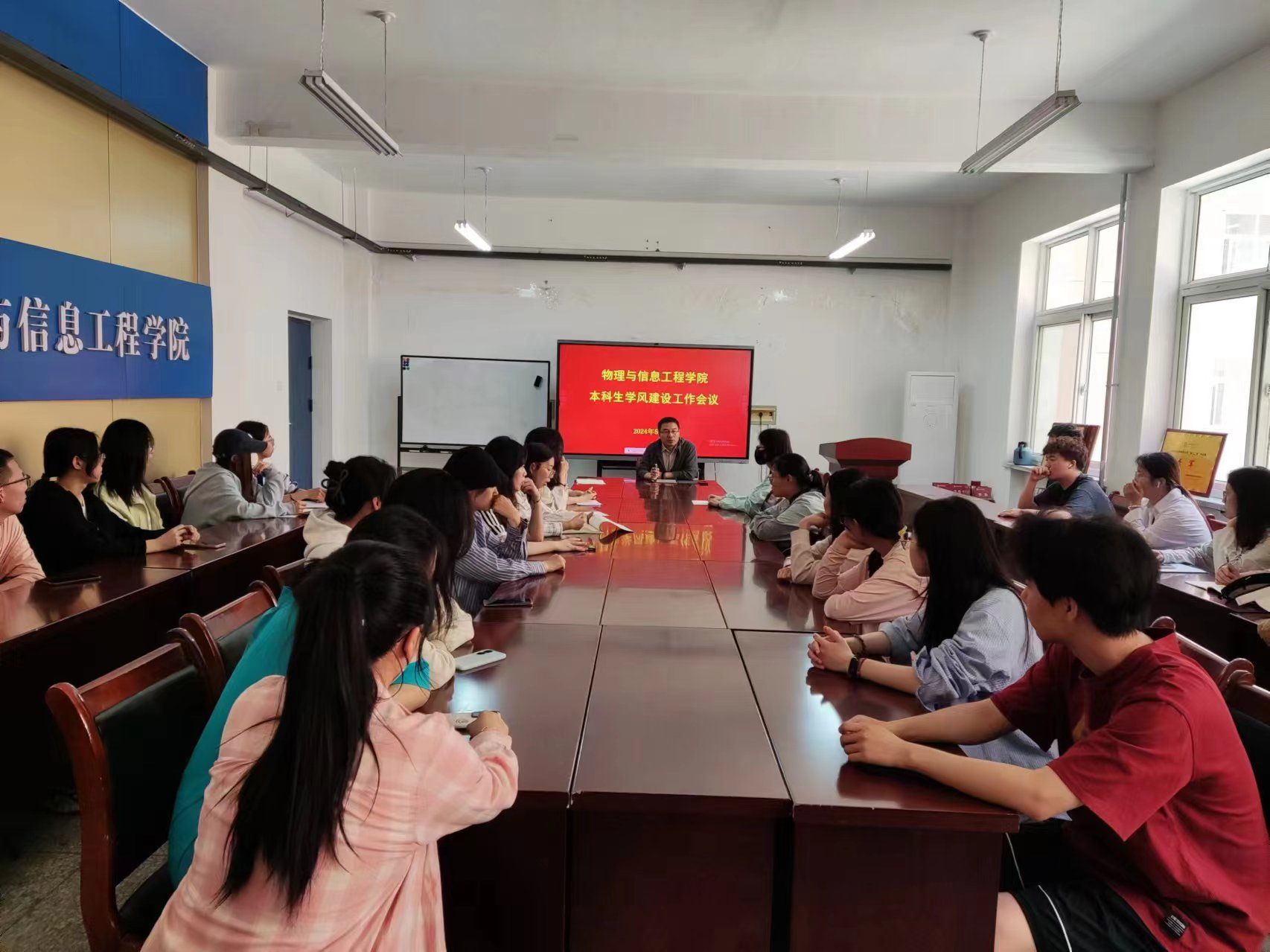 5月8日,mobile28365在实验楼S202召开本科生学风建设工作会议,全体本科班级学委参加会议。会议由教学副经理李俊生老师主持。