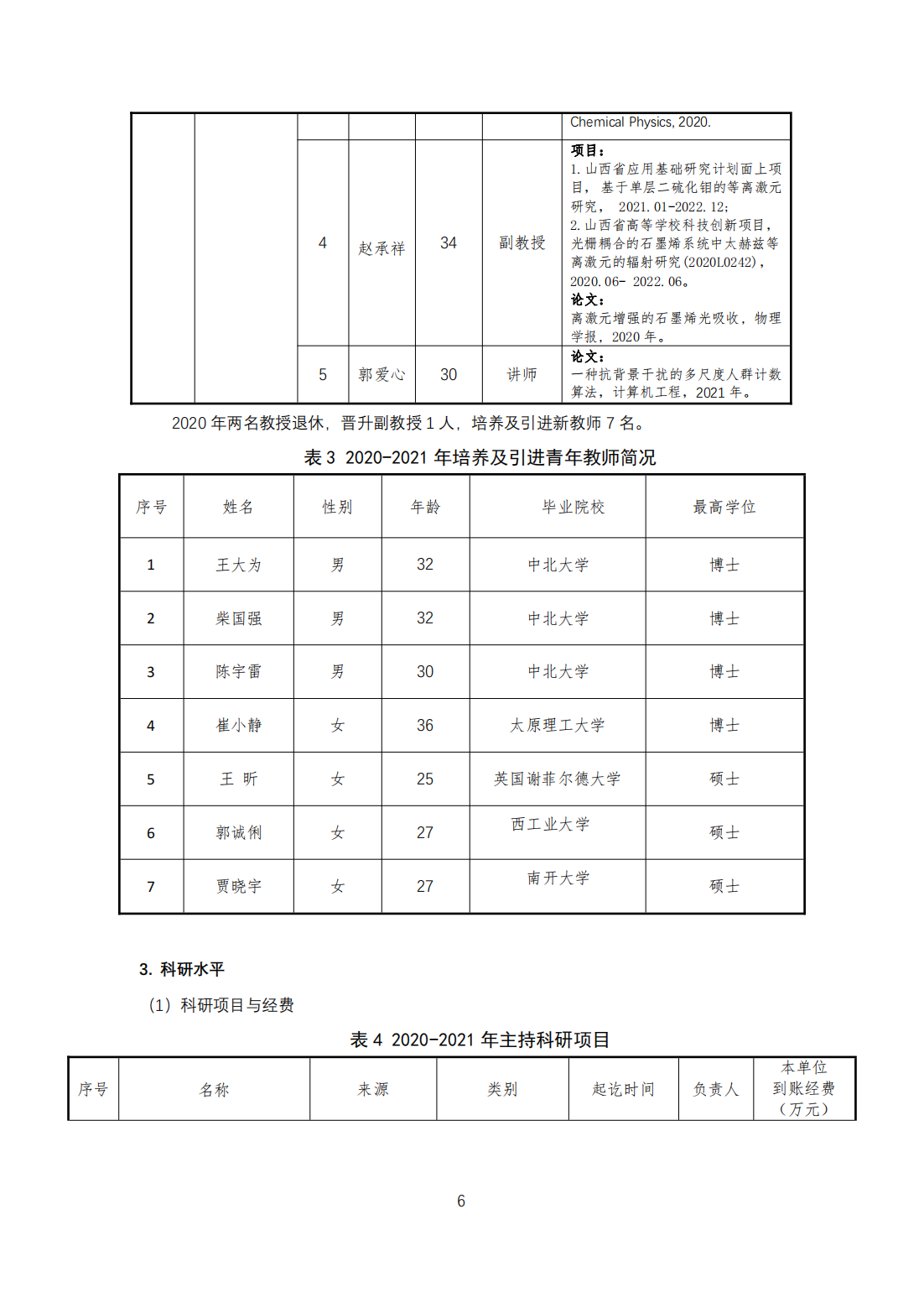 3.鼓励并支持教师申报各类项目,加强科技成果转化。鼓励教师申请各类横向、纵向项目,特别是省级、国家级的重点项目,密切关注地方经济社会发展和产业需求,加强与其他高校、企业、科研院所的联系与合作,联合申请重大课题项目。激发教师科研创新和科技成果转化的积极性,深化“产学研”合作,加大科研成果转化奖励。加强与山西省政府、企事业单位的联系,为各行各业提供技术支持和科学指导,发挥学科智库作用,服务地方发展。