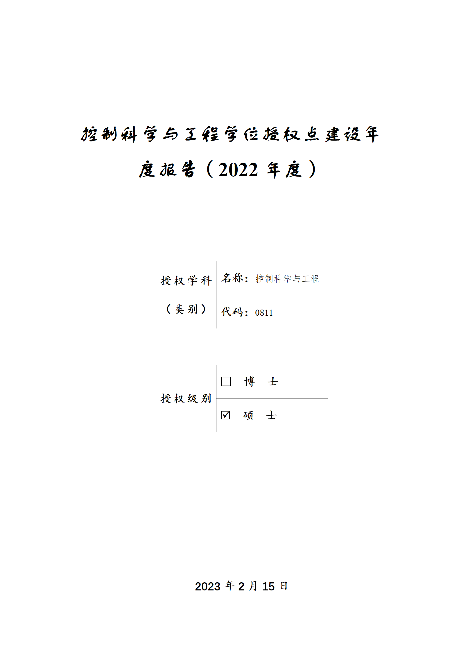 控制科学与工程学位授权点建设年度报告(2022年度)