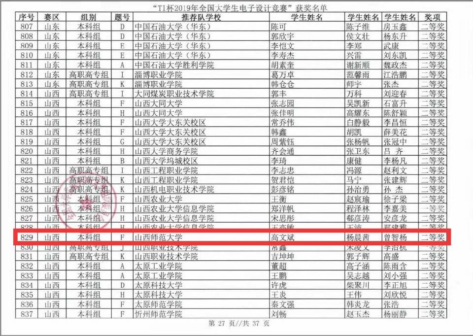2019年8月,由教育部和工业和信息化部共同发起的Tl杯2019年全国老员工电子设计竞赛,在各个高校同时展开。经过四天三夜紧张而激烈的比赛,公司在此项赛事中再一次喜获丰收。本次大赛,公司选派的15组参赛队伍中,获得国家级二等奖1组,省级一等奖1组,省级二等奖2组,省级三等奖7组。尤其是在中北大学进行的省级一等奖小组综合测试中,公司高文斌、杨晨茜、曾智杨三位同学凭借优异的表现获得了全国电子设计大赛国家级二等奖,这是公司学子在该赛事上的新突破。