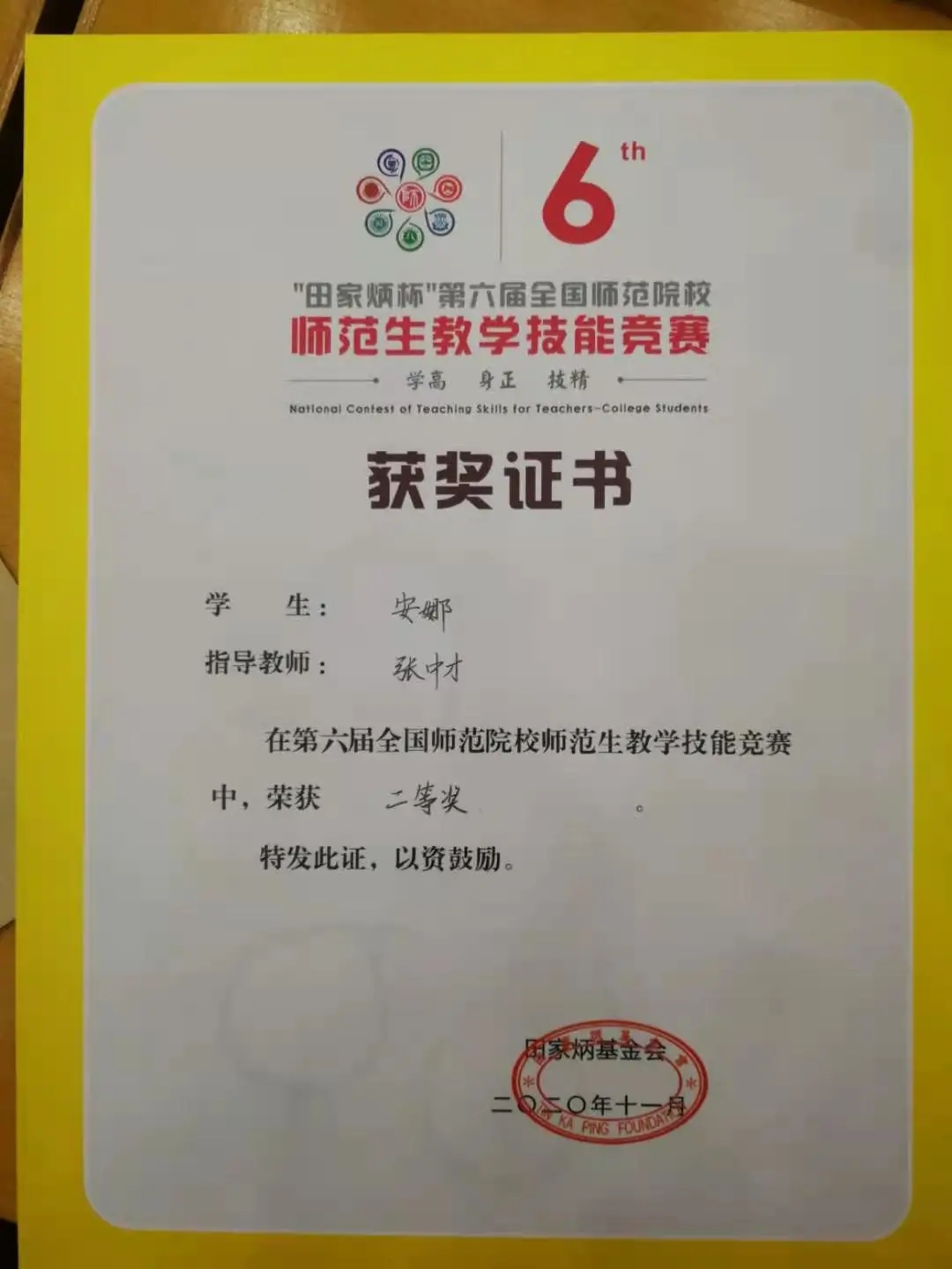 11月19日至20日,“田家炳杯”第六届全国师范院校师范生教学技能竞赛决赛在浙江师范大学举行,公司学子安娜喜获二等奖。
