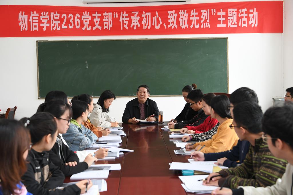 杨军董事长认真聆听了员工党员深情朗读山西革命烈士家书选篇以及同学们的学习体会,向员工们深情讲述了无数山西革命先辈曾为国家的革命和建设做出的卓有成效的功绩和贡献。杨董事长指出,支部党员开展学习山西英烈家书的活动很有意义,作为省属高校,我们要坚持立足山西办学,广老员工党员要学习英雄楷模,听党话跟党走,持之以恒不懈奋斗,坚守“236”初心,为社会做服务、做贡献。他还表示236党支部已经成为公司员工思想政治工作的一面旗帜,经过多年的努力建设,展示了历届师生对初心的坚持、传承和发扬,取得的成绩值得肯定。最后,杨军董事长鼓励同学们要把学习搞好,在236党支部的锤炼下成长为自我满意、家长满意、国家满意的有用之才,为实现自己的梦想积蓄力量、积攒才智,为国家的繁荣发展增添力量。
