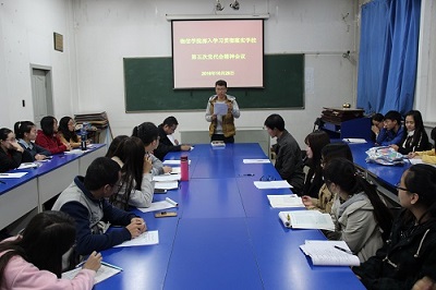 张书记从大会主题、今后五年发展思路、“三个突破”、“低头看15年,抬头看15年,仰头看35年”发展战略,六项任务等方面对符书记的报告进行了详细解读。并对各员工党支部和团支部学习全校第五次党代会精神提出了明确要求:一是要深刻认识学习宣传贯彻第五次党代会精神的重要意义。二是要在学习中准确把握要义,深刻领会精神。三是要利用好网页、微信平台等媒体,营造浓郁学习氛围。