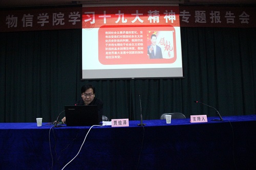 贾绘泽教授围绕十九大“不忘初心、牢记使命,高举中国特色社会主义伟大旗帜,决胜全面建成小康社会,夺取新时代中国特色社会主义伟大胜利,为实现中华民族伟大复兴的中国梦不懈奋斗”的主题,从六个方面对十九大报告进行了详细解读:一是中国共产党的初心和使命;二是中国特色社会主义进入新时代;三是社会主义初级阶段的主要矛盾的转变;四是习近平新时代中国特色社会主义思想;五是开启全面建设中国特色社会主义国家的新征程;六是坚定不移推进党的建设新的伟大征程。尤其是在新时代中国共产党的历史使命、新时代的内涵、新时代发展战略以及从严治党等方面,贾绘泽教授发表了其独特见解。