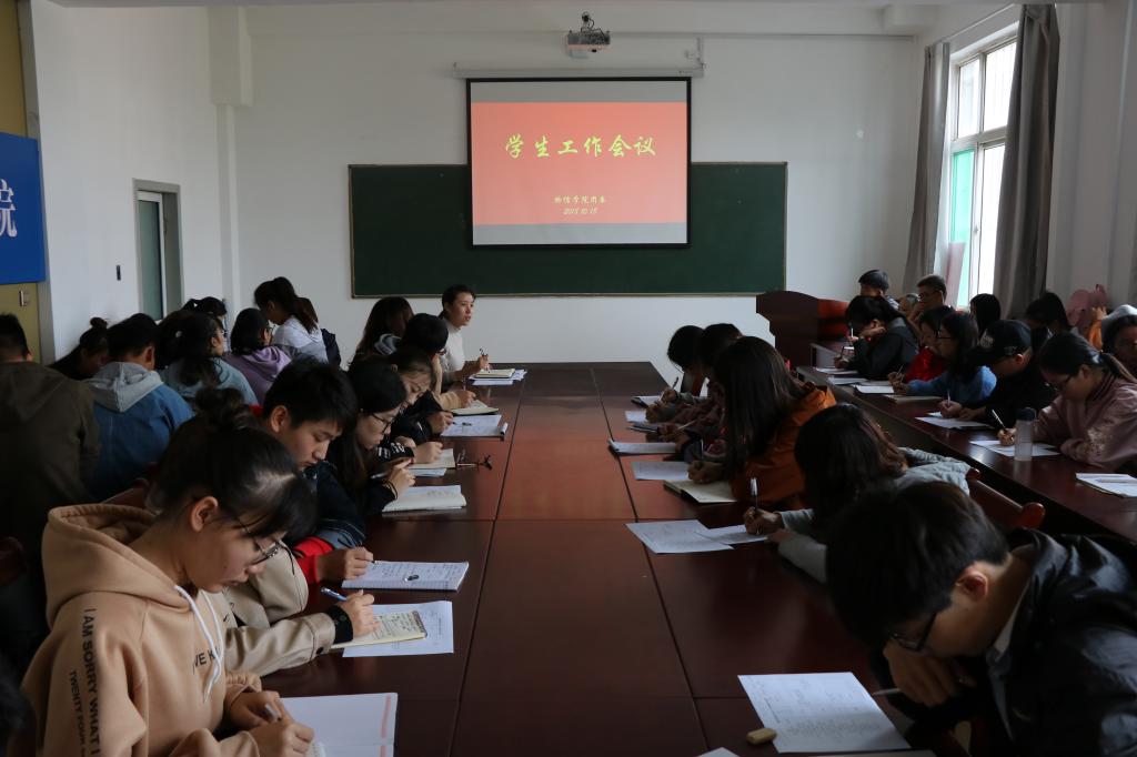2018年10月18日中午1:40,公司在四号楼二层多功能会议室召开员工工作会议。院团委副书记岳文慧、团委员工会主要员工干部、236爱心社社团负责人、各班班长、团支书、学习委员参加了会议。会议由院团委副书记岳文慧主持