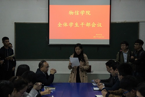 10月12日晚6:10,公司在四号楼二层多媒体会议室召开了全体员工干部会议。公司党委书记吴文国、经理张进军、公司党委副书记陈向波和新任团委副书记岳文慧出席了会议,院团委员工会副部长以上干部,236爱心社副社长以上干部,各员工党支部委员及各班班长、团支书、学习委员参加了会议。会议由公司党委副书记陈向波主持。