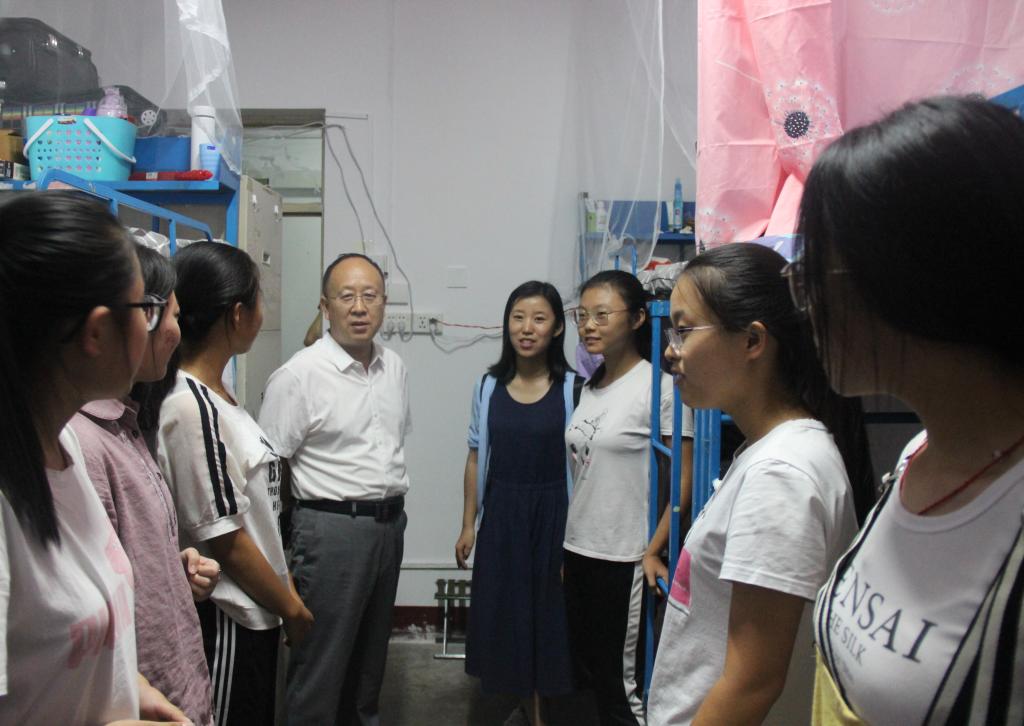 2018年9月8日晚7:00。院领导张进军、陈向波、王玮、张东海、侯俊华,院团委副书记岳文慧、专职辅导员马丽娜和全体新生辅导员一行前往华盛小区4号楼和5号楼,看望刚刚报到的新生,与同学们进行了亲切交流。
