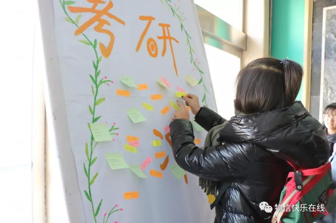 考研祝福展板前,一批又一批的学弟学妹怀着真诚的心将对学长学姐们的祝福写在了便签上。“学长,学姐 考研加油!”、“学长学姐们,真心祝愿你们考上心仪的公司!”、“学弟学妹永远支持你们!”……暖心的话语、真挚的祝福,学弟学妹们用自己的行动为考研学子送上了温暖的祝福!