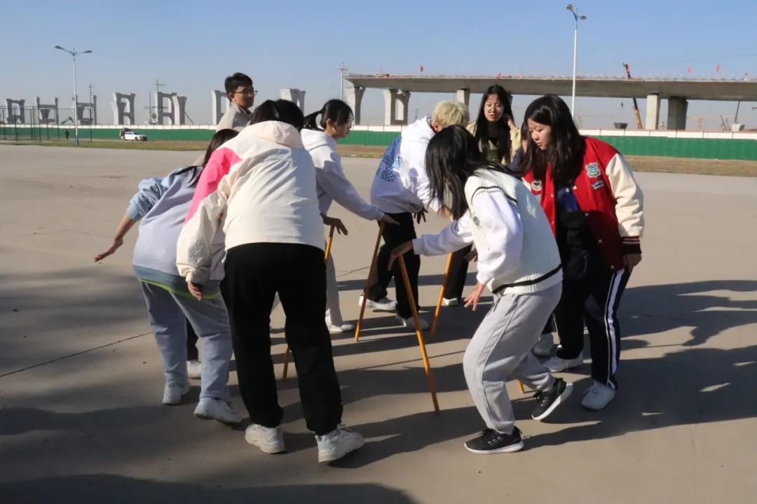 为提高公司团学组织志愿者的综合素质,培养他们的团队意识和团结协作能力,10月15日上午,院员工会自律部在北区操场开展了2023级志愿者素质拓展活动。本次素质拓展的活动包括“两人三足”、“不倒森林”、“盲人方针”等项目。活动中,志愿者首先绕芦花湖慢跑两圈进行热身,在自律部负责人孙雨菲的组织下,同学们被随机分成多个小队,并分别制定了队名、队歌、队形和口号。在“两人三足”、“不倒森林”、“盲人方针”等精心设计的项目中,同学们互相支持、互相配合,不论是成功还是失败,大家不断挑战自我、总结经验,体会到了团队合作的力量。通过重重考验,同学们配合更加默契,也更加信任对方,感情也在一次又一次挑战中不断加深。