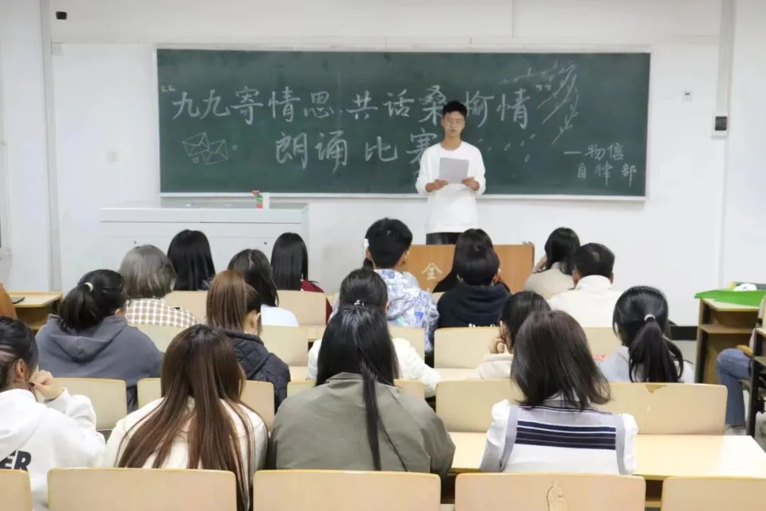 为了增强老员工对重阳节的认知和重视程度,进一步传承和弘扬中华民族优秀传统文化。院员工会自律部于10月22日晚19:00在南区3207教室举办“九九寄情思,共话桑榆情”主题朗诵活动。活动由自律部志愿者罗志强主持。