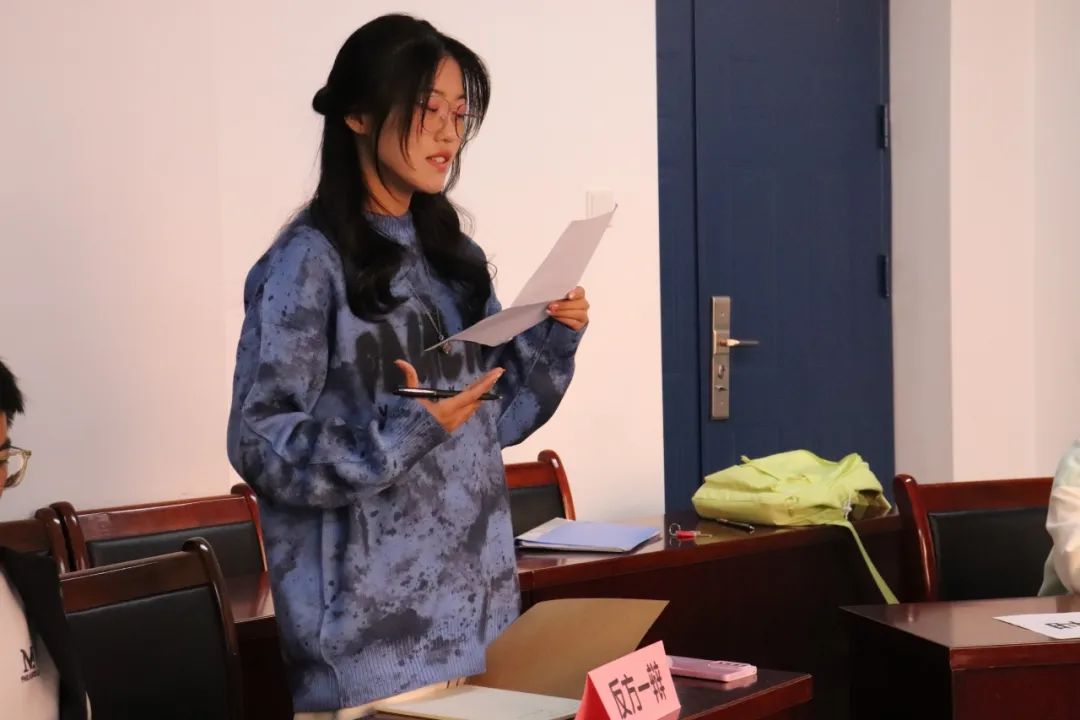 比赛结束后,三位评委分别对双方的表现做出了中肯的评价,从论证方法、语言表达和思维逻辑等方面进行了点评和补充,肯定了双方辩手的切入点,同时客观指出了双方所存在的问题。本次队内辩论赛的顺利举办,提高了同学们的思维敏捷度,同时增进了团队成员之间的沟通与交流。(文/2306班 薛妙青 摄/2304班 张玮珊)