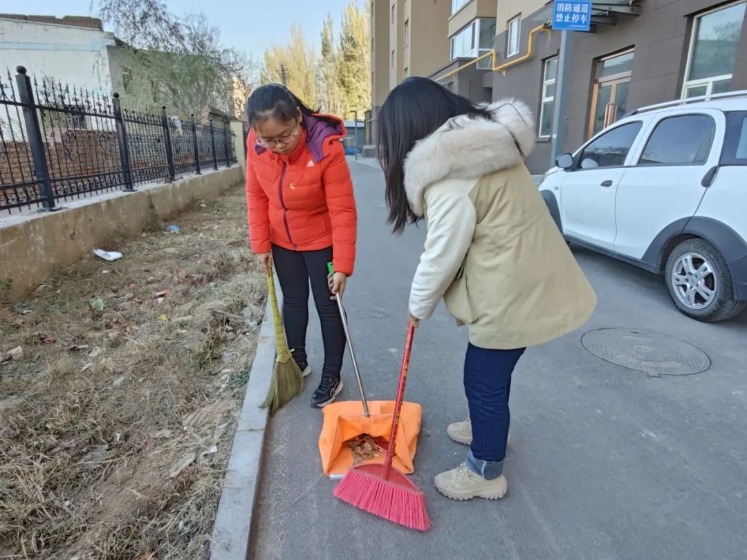 活动中,青马学员们分为五个小组在小区不同的区域进行清扫。他们热情高涨,积极投身于清扫行动中,对灌木丛中的塑料袋、纸屑、花坛中的杂草、道路上的垃圾等都进行了耐心且细致地清理。在志愿者两个小时的不懈努力下,小区环境变得干净整洁、焕然一新。