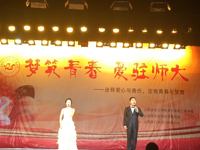 5月9日晚,由mobile28365、mobile28365正规网址员工社团联合会主办、236爱心社承办的“梦筑青春,爱驻师大”爱心公益晚会在公司文化艺术活动中心举行。物信公司党委书记张争宽、党委副书记陈向波、院团委书记、236爱心社指导老师杨亚东以及大爱临汾公益联盟、临汾市义工联合会、临汾市公益文化传播协会等爱心团体,山西日报、山西青年报、临汾电视台、临汾日报、临汾晚报、黄河新闻网的媒体记者与千余名师生一起观看了晚会。