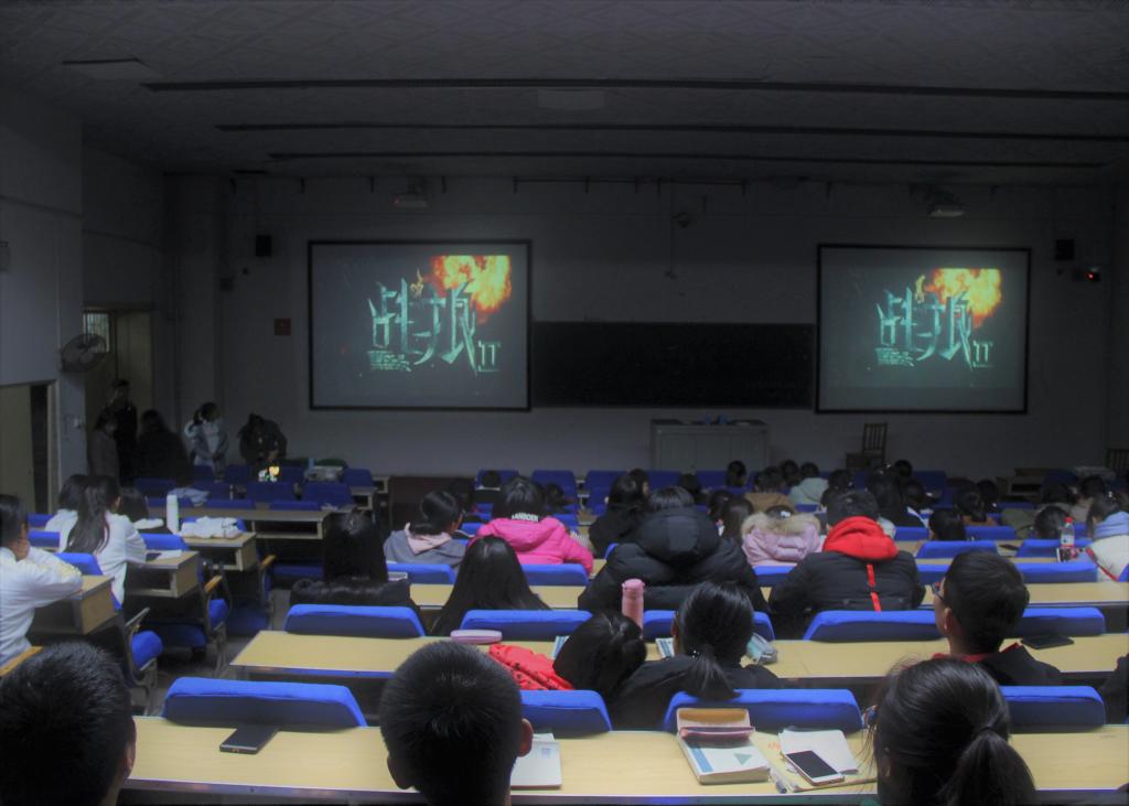 为了增强同学们的民族责任感,树立爱国主义精神。公司团委于2018年11月17日晚组织大一新生在05203教室观看了爱国主义影片——《战狼2》。