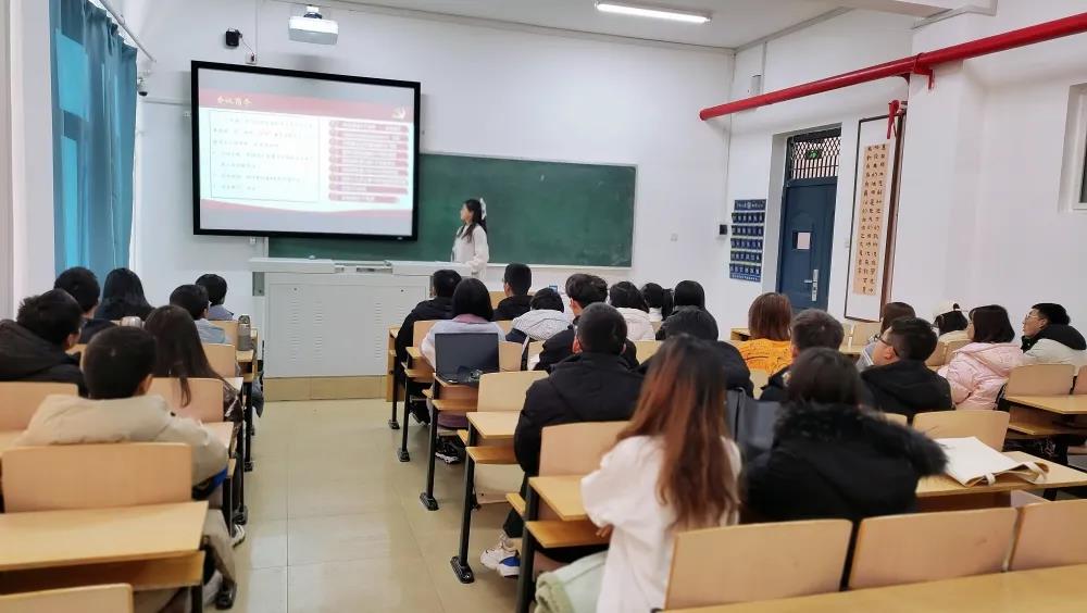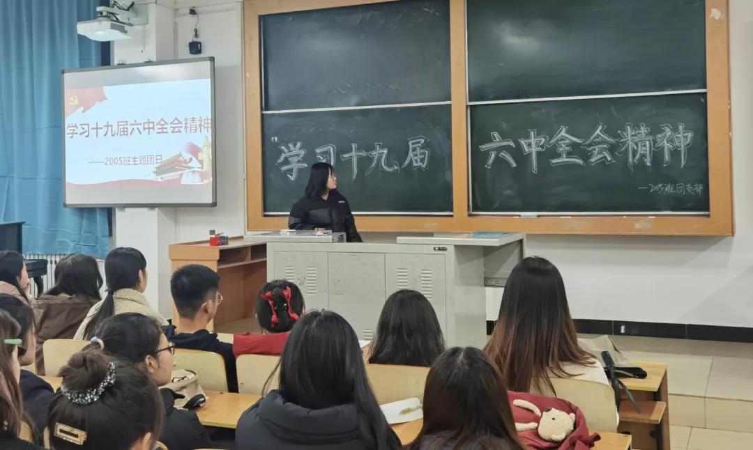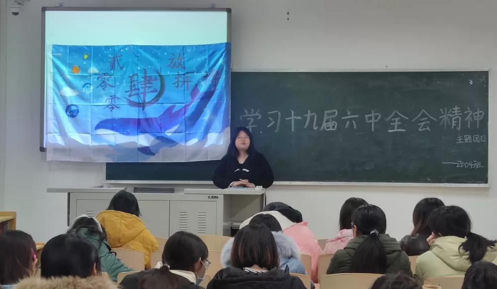 活动中,各班团支书结合PPT和视频带领同学们从会议时间、重要成果、重大意义等方面深入学习了十九届六中全会相关知识。通过学习,同学们了解到,党的十九届六中全会是在重要历史关头召开的一次具有重大历史意义的会议,作为当代老员工应该紧跟时代脉搏,深入学习贯彻会议精神。在交流讨论环节,支部成员积极发言,向大家分享了个人学习成果。2003班团支部成员贾瑞玲说道:“作为一名师范类专业员工,我们要不断学习、积极探索,努力提高个人知识水平,为实现中华民族的伟大复兴贡献青春力量。”2006班团支部成员付文心说道:“我们作为青年老员工,要立足当下,不忘初心、牢记使命、刻苦学习、踏实奋斗,担当起青年一代的历史使命。”