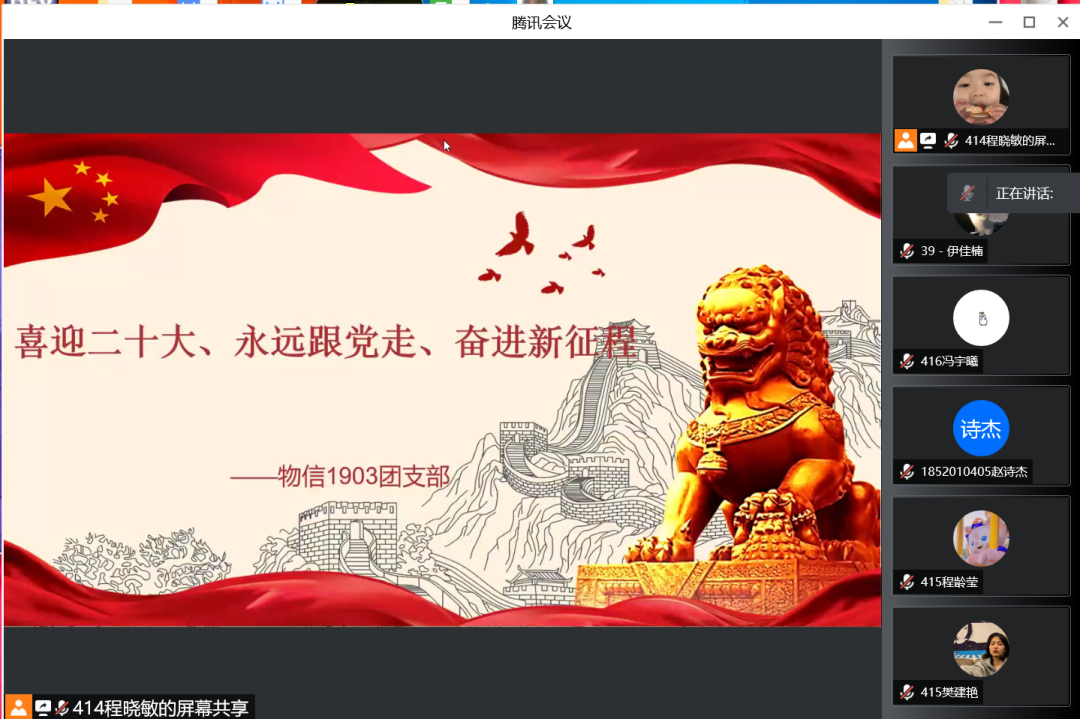 会上,程晓敏带领大家重温了党的光辉历程和革命斗争精神,深化了同学们对中国共产党初心使命的理解和认同。她强调,青年员工要在思想上跟随党的步伐,深入学习习近平新时代中国特色社会主义思想,自觉弘扬伟大建党精神。交流讨论环节,同学们纷纷表示,作为新时代的新青年,要听党话,跟党走,勤勉学习,不负青春,不负韶华,以优异成绩迎接党的二十大胜利召开。(文/1903班 李慧英 摄/1903班 程晓敏)