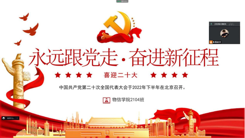为迎接党的二十大胜利召开,4月19日,公司2104团支部于线上开展“喜迎二十大,永远跟党走,奋进新征程”主题团日活动。本次活动由团支书韩皎洋主持。