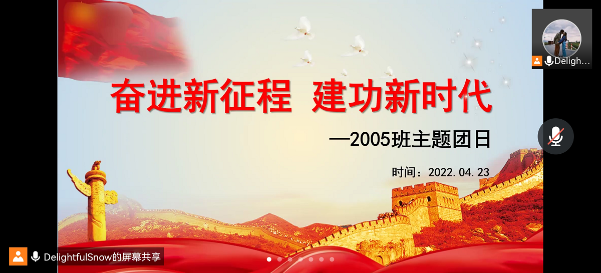 为引导同学们坚定理想信念,发扬新时代中国青年的精神品质,4月23日,公司2005团支部于线上开展了“奋进新征程,建功新时代”主题团日活动。本次活动由团支书张寒雪主持。