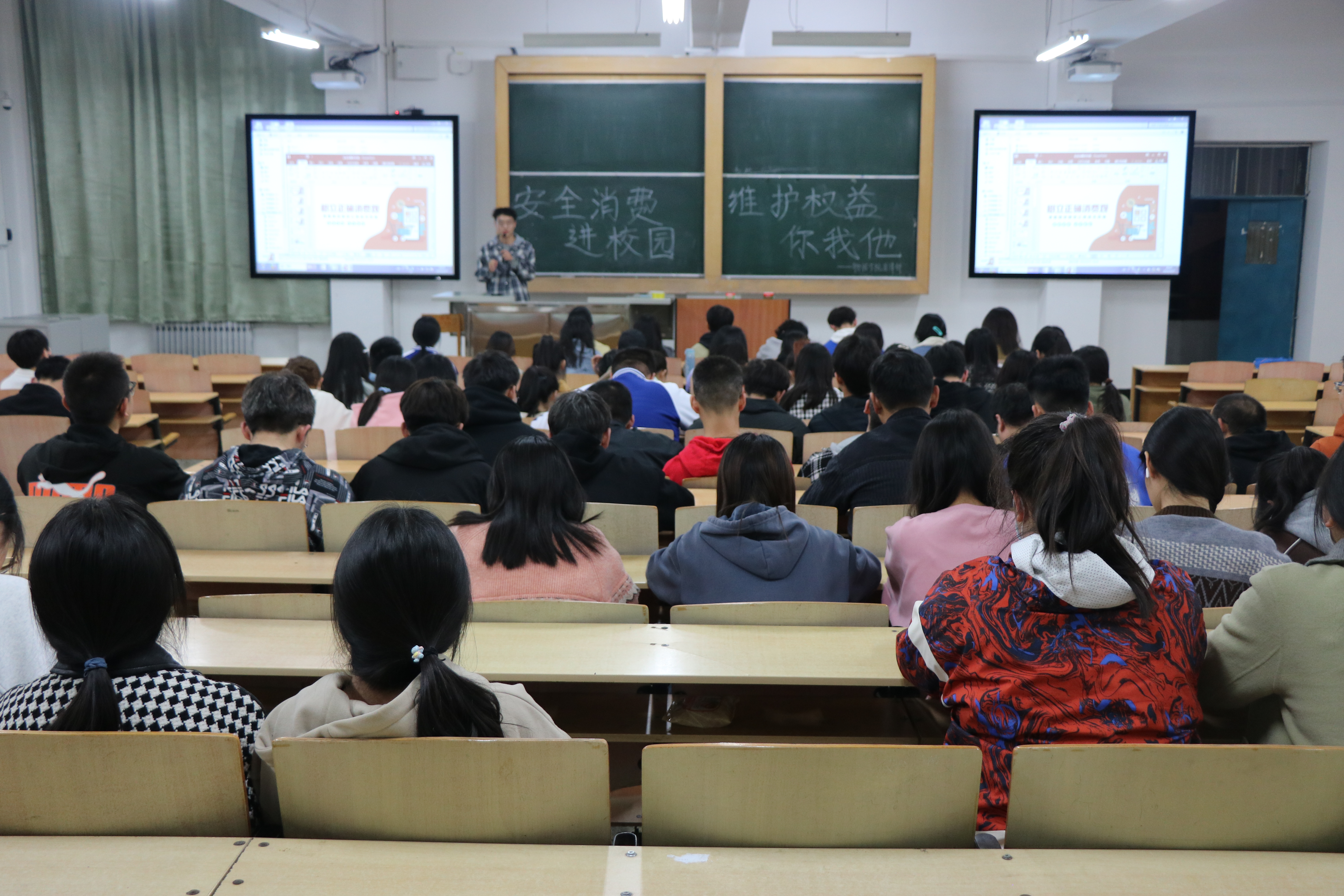 活动分为案例分析、问卷调查、知识竞答三个环节。贾强结合PPT向大家介绍了消费者应有的权利,解释了自我维权的重要性。他还邀请部分志愿者通过案例阐述如何识破骗局以及发现被骗后正确维护自己合法权益的方法。在知识竞答环节,同学们积极回答有关消费维权的问题,营造了热烈的活动氛围。