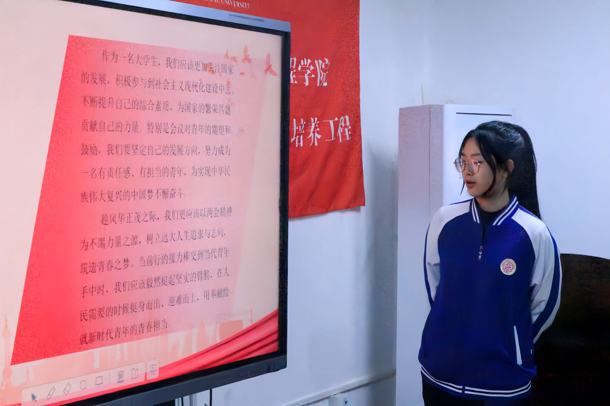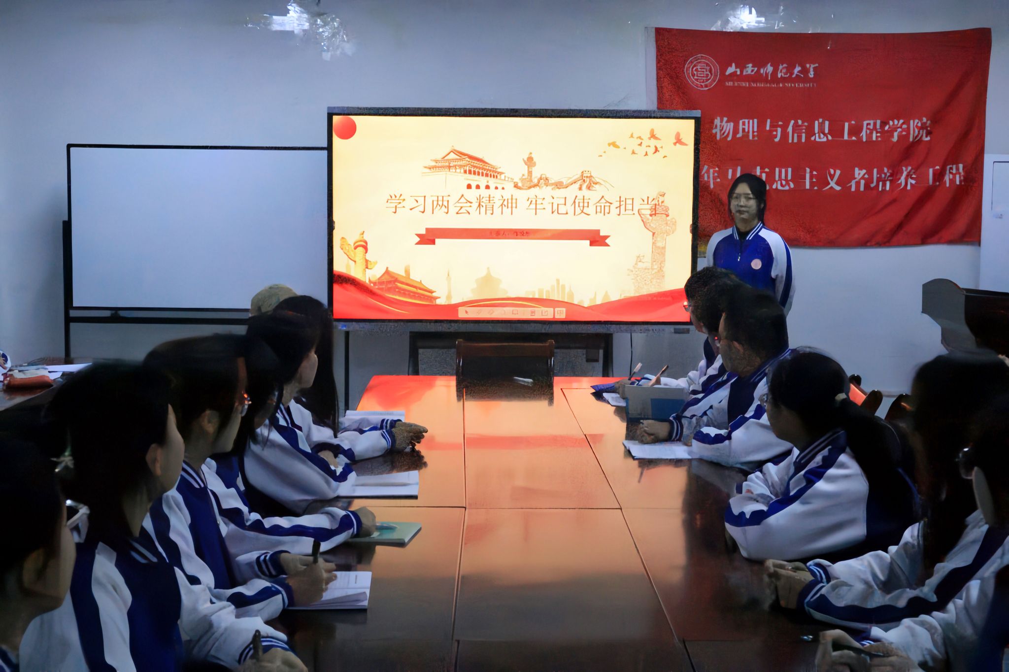 为深入学习贯彻全国两会精神,引导广大团员青年关注国家大事,厚植爱党爱国情怀。院团委办公室于3月13日20:20在实验楼S202开展了“学习两会精神,牢记担当使命”主题团课,全体2023年青马学员以及大一至大二各班团支书参加本次活动。