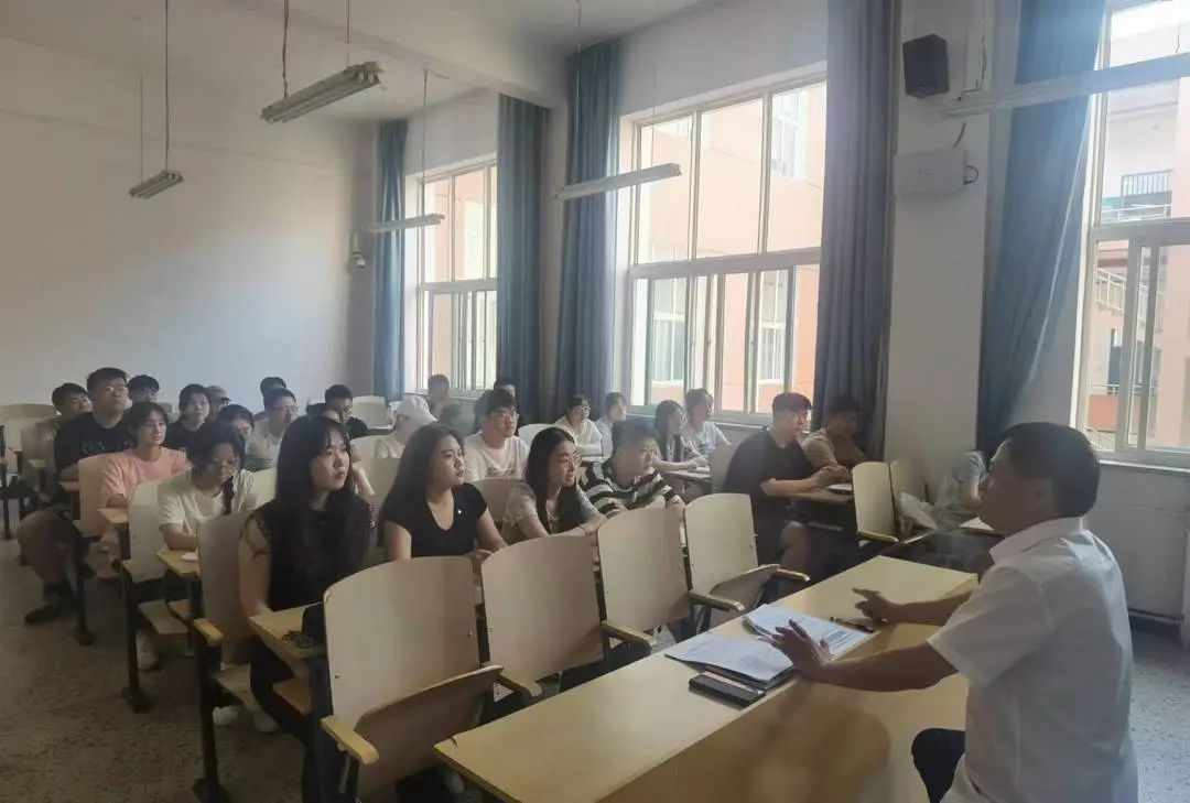 会上,团支书张寒雪对四年来的班级工作、当前就业和升学形势及同学们的未来努力方向作了工作总结。随后,同学们针对毕业就业的问题进行提问,许国宝耐心解答并对全体毕业生提出三点希望。一要不忘初心,衷心爱国,坚定自己的理想信念,并将自己的理想信念同国家前途命运相结合,做到德智体美劳全面发展,努力成长为可堪民族复兴大任的时代新人。二要具有持续奋斗的精神,在考研考编的备考过程中,不能“三天打鱼两天晒网”,要不怕苦、不怕累,始终朝着自己的目标持续奋斗。三要保持不断创新的精神,直面挑战,奋力书写为中国式现代化挺膺担当的青春篇章。(文/2005班 范雨萱 摄/2005班 范雨萱)