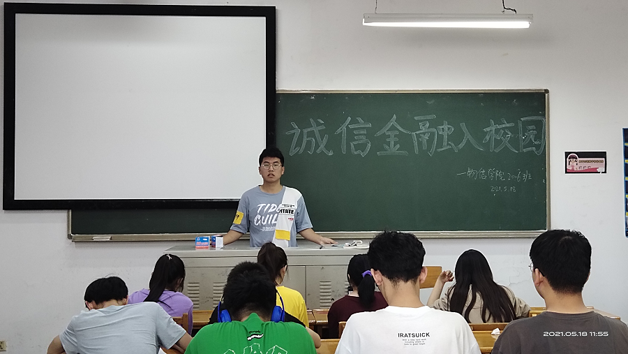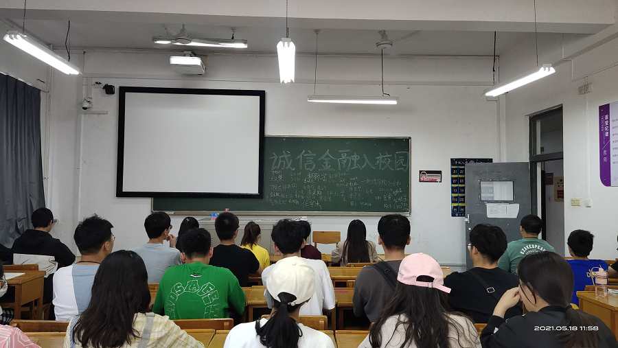 为增强同学们的法律意识和诚信意识,5月18日,公司2006班于07210教室开展了“诚信金融入校园”主题班会。此次班会由班长任宇杰主持。