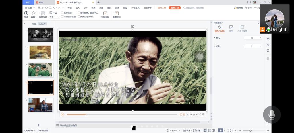 为深切缅怀袁隆平、吴孟超两位院士,学习他们为国为民的高尚精神,5月26日,公司2005团支部在线上开展了“侠之大者,为国为民”主题团日活动。本次活动由团支书张寒雪主持。