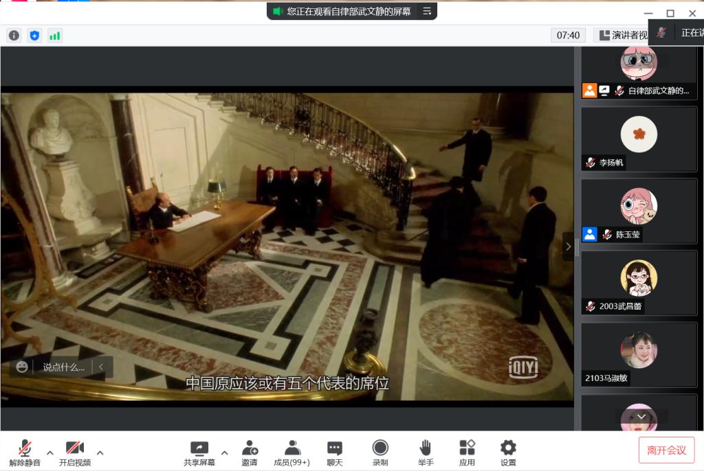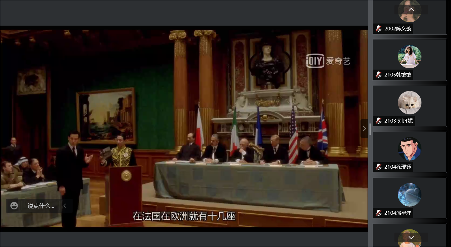 本次活动共吸引了130多名同学参与。活动中,大家一起观看了电影《我的1919》。影片以第一次世界大战末为背景,讲述了中国外交才子顾维钧作为中国代表团一员参加巴黎和会的经历。