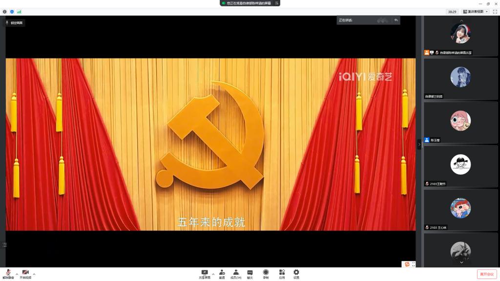 在五四青年节到来之际,为继承和发扬伟大五四精神,5月2日下午,院员工会自律部在线上举办了“我的青春正青春”主题观影活动。活动由自律部志愿者武文静主持。