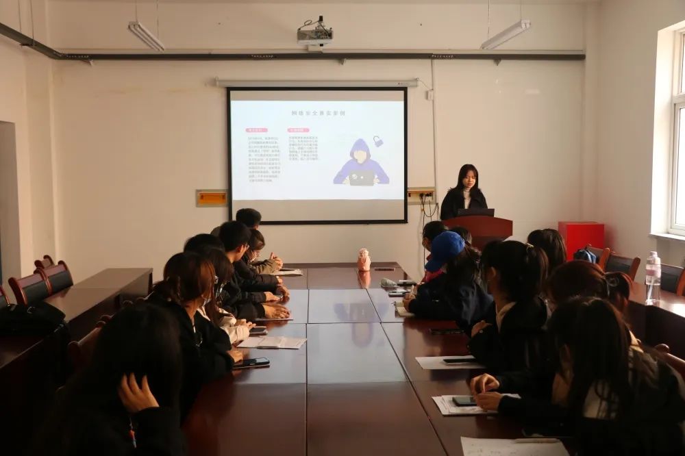 为了让同学们深刻认识到网络安全的重要性,预防和抵制网络诈骗,11月21日中午,公司团委于南区实验楼s202开展了“网络安全始于心,安全网络践于行”主题团课活动。本次团课由2103班赵肖婷主讲。