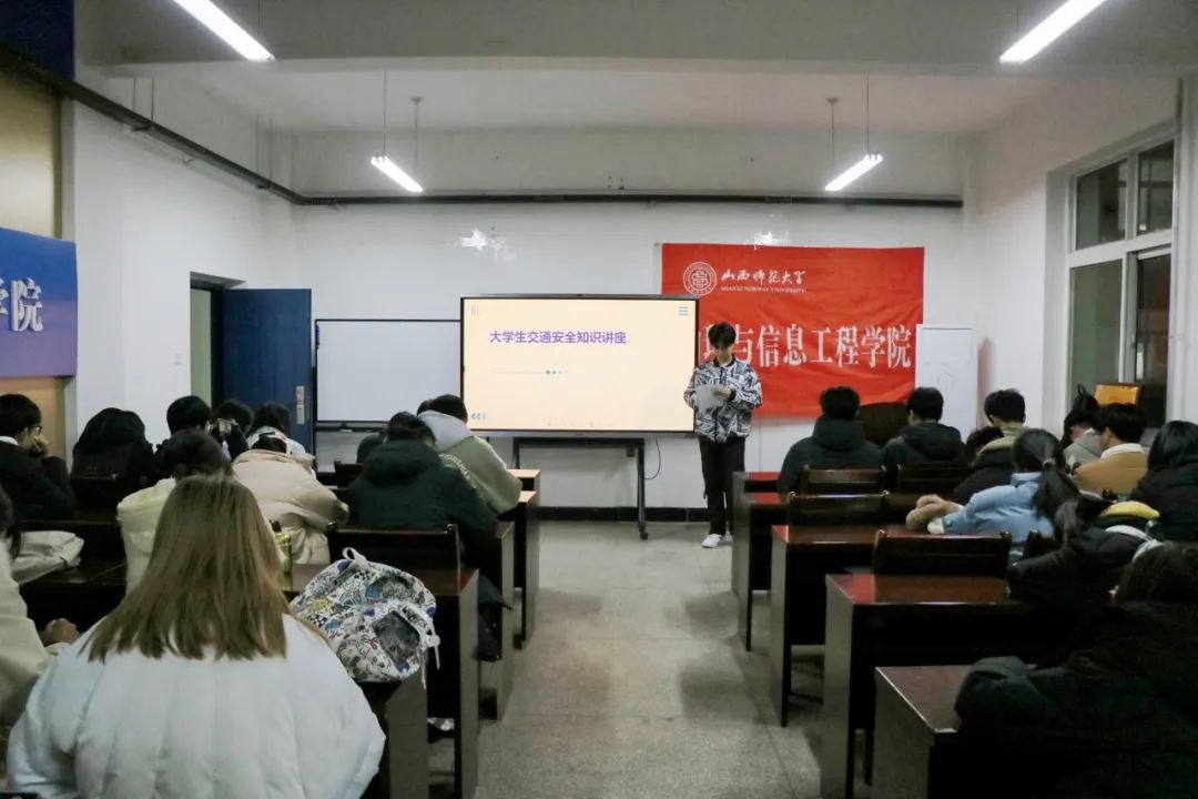 为了提高同学们的交通安全意识,增强自我保护能力,12月13日晚20:30,院员工会自律部于南区实验楼s202举办“遵守交通规则,平安与你同在”交通安全知识讲座。本次讲座由自律部志愿者武煜盛主持。