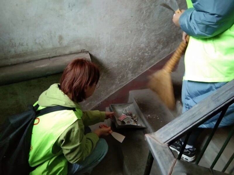 在“情”扫落叶活动过后,公司开展了本学期最后的家属楼清扫活动。本次活动分为两次进行,主要打扫内容为清扫居民楼楼道的垃圾。本次活动不仅为居民提供了温馨整洁的居住环境,也进一步提升志愿者们的服务与责任意识。
