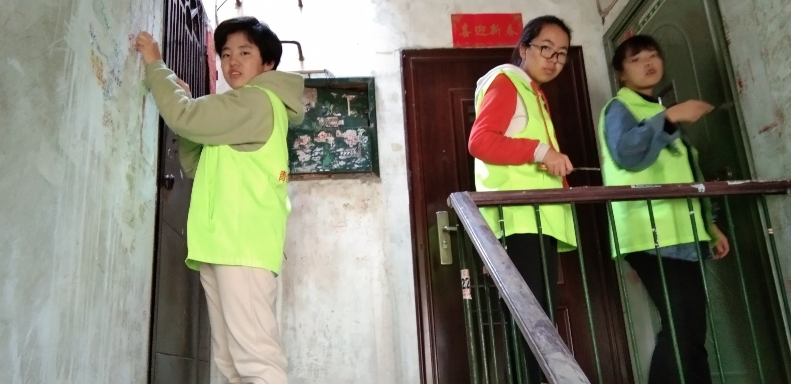 活动中,志愿者们首先了解了家属楼内的具体情况,在确定清扫的对象和工作方式后开始了打扫,主要打扫内容是清理墙上和楼梯上的小广告。在打扫过程中,志愿者们拿着铲子、喷壶等工具,一张一张的将小广告喷湿并铲除,不放过每一个死角。
