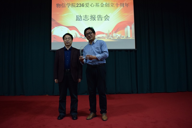 2017年4月17日晚7点,公司236爱心基金创立十周年励志报告会在科学会堂二层报告厅成功举办。上海长海医院放射治疗科主管技师、复旦大学博士、236爱心基金创始人、0602班员工郭学玲,陕西省延安市宜川中学高二年级副主任、236爱心社第2和3任社长、1002班员工李江波,临汾日报社记者、0103班员工张莹超,中国公益在线临汾站、山东商会会长、文都考研机构的代表等嘉宾应邀出席,公司党委书记吴文国出席了报告会。报告会由公司团委书记杨亚东主持。