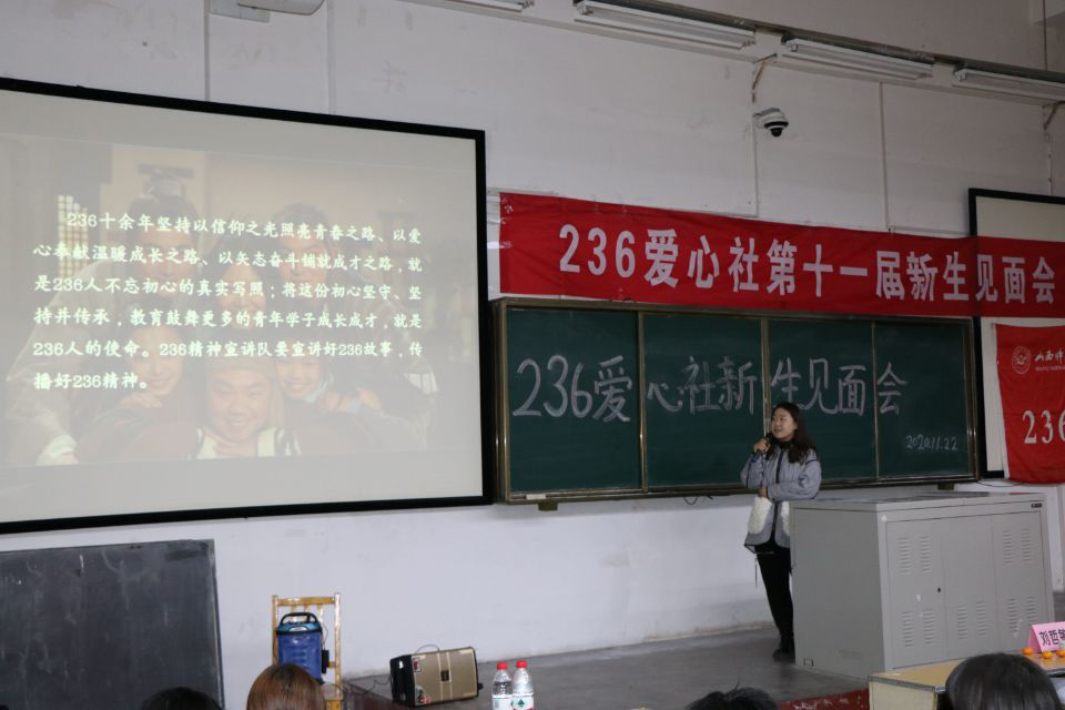2020年11月22日下午2:30,236爱心社在05201、05103教室举办了2020级新社员见面会。236爱心社现任负责人以及部分新社员参加了见面会。