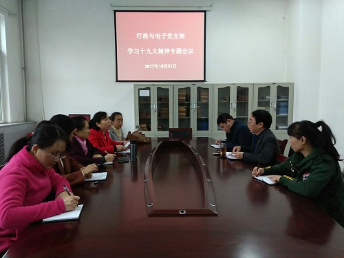 10月31日上午9:30,公司行政与电子教工党支部在二层会议室召开“学习十九大精神专题会议”,支部全体党员参加了会议,会议由支部书记卫永霞主持。