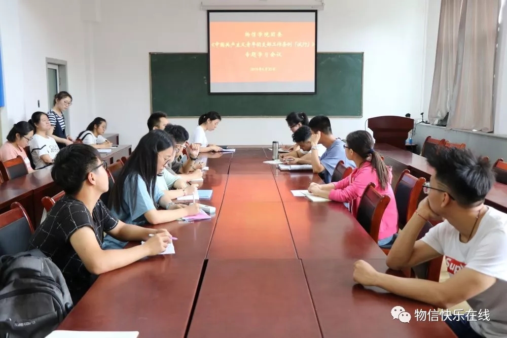 2019年6月20日上午10:20,公司团委在四号楼二层多功能会议室召开《中国共产主义青年团支部工作条例(试行)》专题学习会议。大一到大四团支书参加了会议。会议由院团委副书记岳文慧主持。