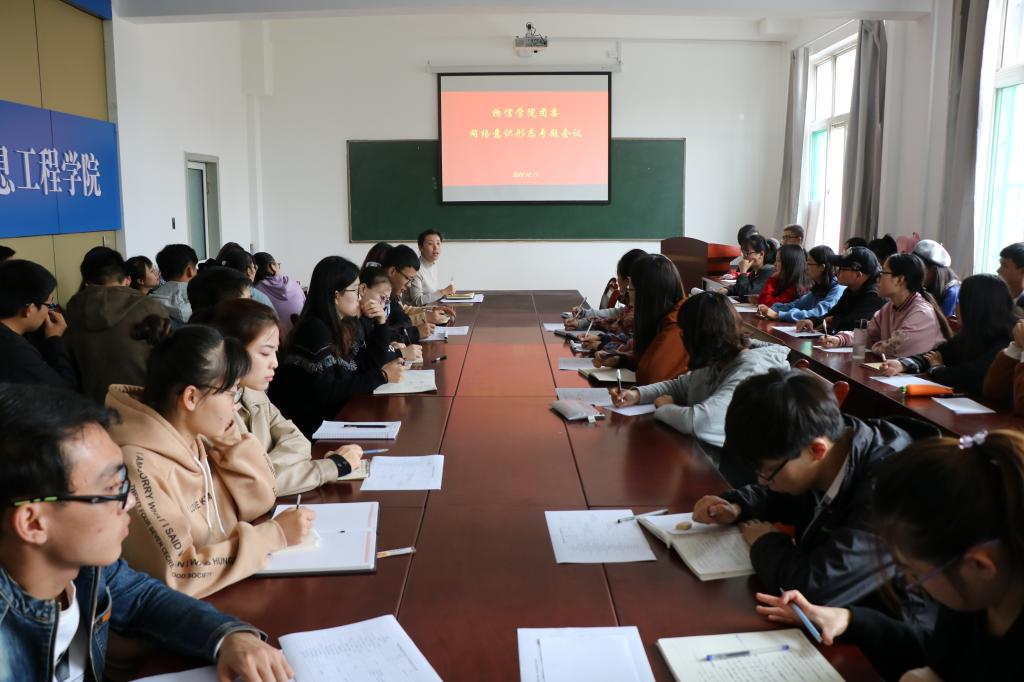 2018年10月18日中午12:20,院团委在四号楼二层多功能会议室召开网络意识形态专题会议。院团委副书记岳文慧、团委员工会主要员工干部、236爱心社社团负责人、各班班长、团支书、学习委员参加了会议。会议由院团委副书记岳文慧主持。
