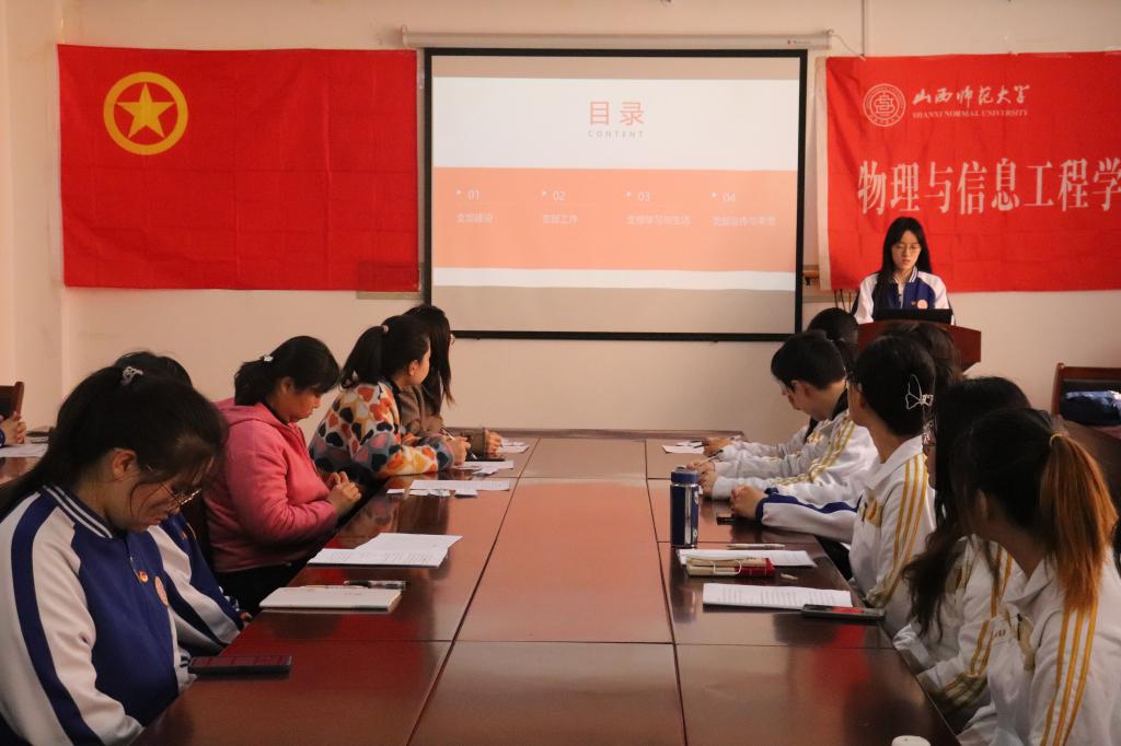 会议上,21个团支部按照抽签顺序结合ppt依次进行汇报展示,从思想引领、组织建设、成员风采、总结展望等方面展开汇报。各团支部书记对一年以来的团支部建设工作进行总结,展示了各团支部特色以及建设情况,增强了各团支部之间的交流与沟通。