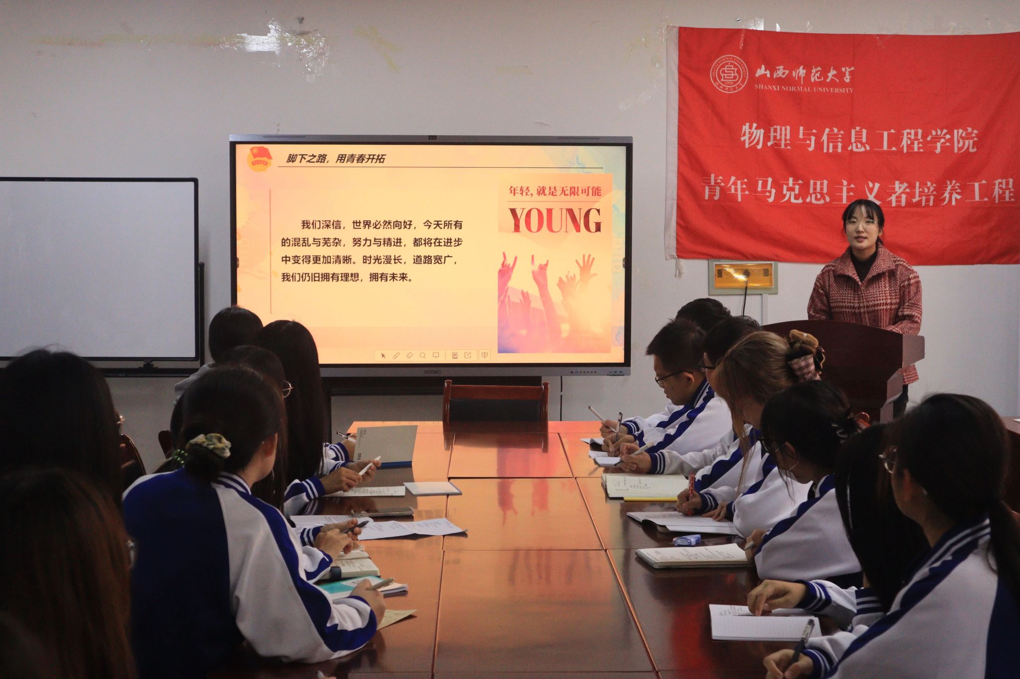 课堂上,马丽娜老师以《信仰,照亮前行的路》为题,带领全体青马学员从历史之炬用青春点亮、时代之问以青春作答、脚下之路用青春开拓三个方面讲解了中国共产主义青年团的成立与发展、不同历史时期共青团员的拼搏奉献以及新时代共青团员的使命担当。她指出,在中华民族伟大复兴的征程中,曾经的青年或许离去,青春的力量却代代相传,希望全体青马学员牢记党的教诲,不负韶华,不负时代,不负人民,在奋斗中磨练本领,在磨砺中增长才干,让青春年华在为国家、为人民的奉献中绽放绚丽光彩!团课最后,马丽娜老师对本期青马培训课程安排做了进一步的规划和调整。