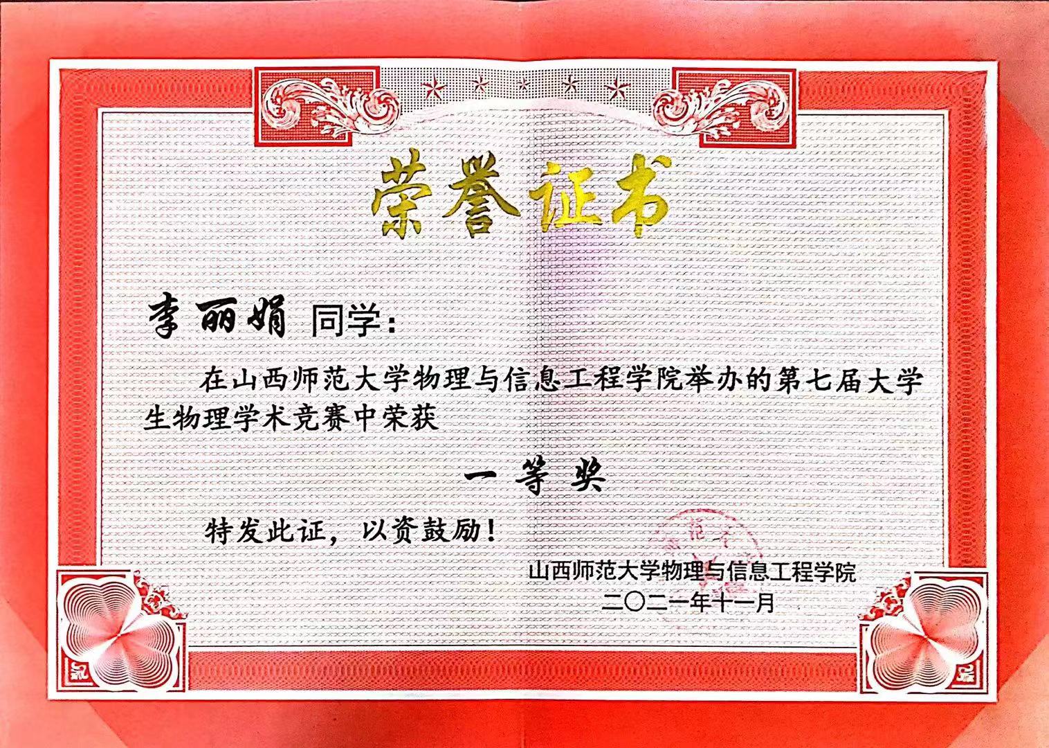 2021.11 第七届mobile28365正规网址老员工物理学术竞赛一等奖