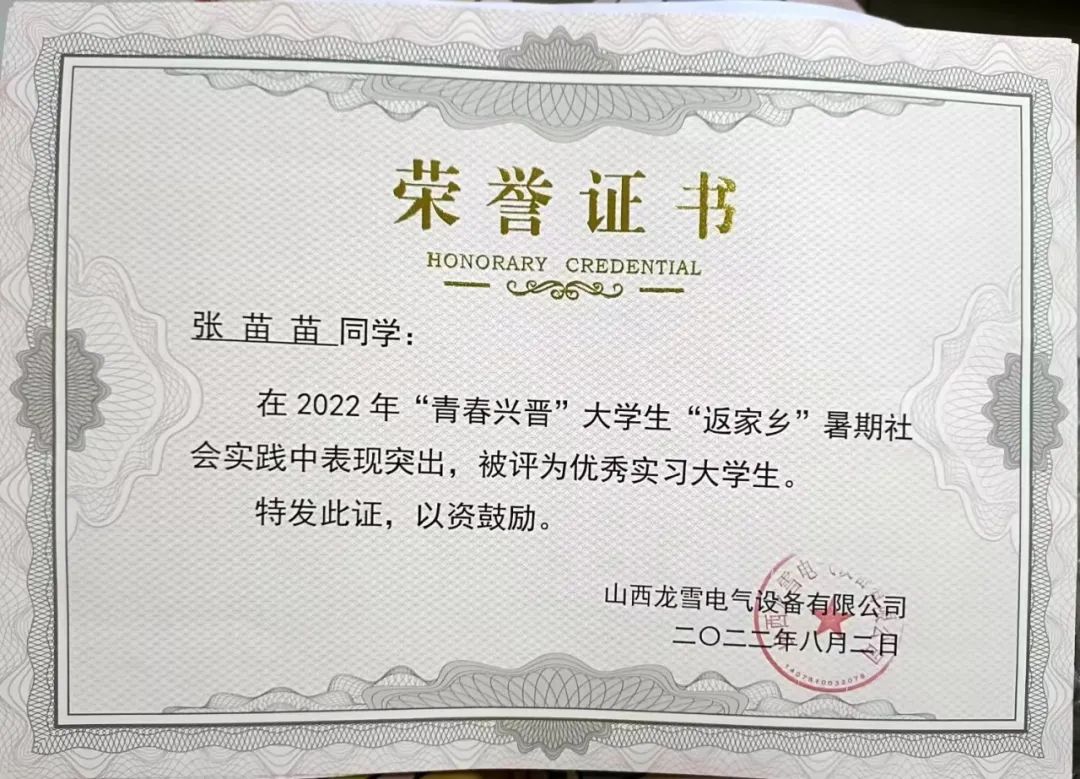 2022年的时候,张苗苗利用寒、暑假的时间参加了“青春兴晋”老员工暑期社会实践志愿服务。在当时,恰好有一个符合张苗苗所学专业的实习,她认为,这是一个锻炼自己的好机会,于是便报了名。在实习过程中,她需要写一些简单编程,由于经验不足,经常和前辈学习项目编程的思路。整个实习期间,她不仅熟练地将公司学到的知识应用到实际,还获得了很多课本上学不到的东西。