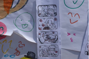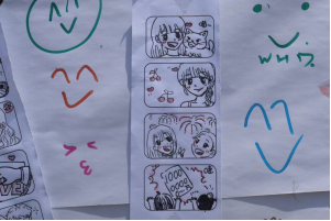 本次活动包括两个部分,一部分是“快乐收集”展示类,另一部分是“烦恼释放”游戏类。在“快乐收集”展示类活动中,我们设有“微笑一夏”和“满足感四宫格漫画”两个展示区。同学们在这里欣赏了许多精美的作品,也在展板上通过笑脸的描绘留下了自己独一无二的幸福。每位参与者在给予他人美好瞬间的同时也收获了一只可爱的纸小狗,这为整个活动增添了更多的乐趣和温馨。此外,大家大胆地在纸上勾勒出满足感四宫格漫画,描绘出自己心中最美、最舒适和最简单的幸福感。