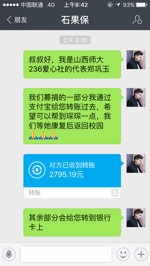 衷心祝愿石琛琛同学早日返校,衷心希望每一个人都能奉上一点绵薄之力!