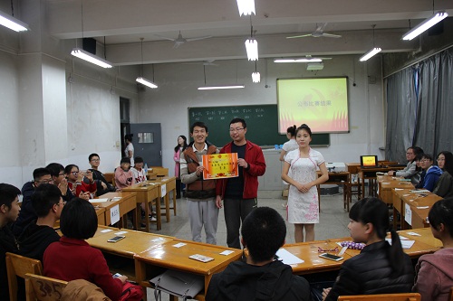 活动最后,公司员工会主席王强、院团委组织委员刘雅芹、236社团社长许思亭为获奖的团支部及在“勿忘国耻,圆梦中华”征文比赛中获奖的同学颁奖。