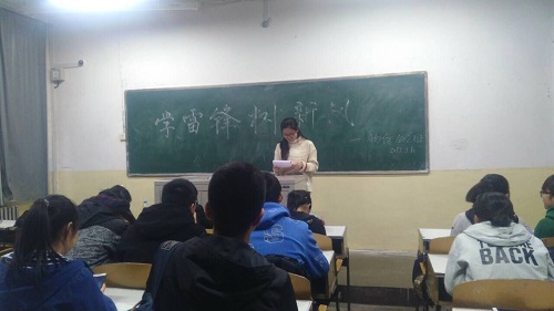 3月5日下午,公司青协在04213教室组织大一各班班长、团支、宣传、组织、心理委员,开展了“学雷锋宣传讲座”。讲座通过放映PPT、视频介绍雷锋生平,各班讨论雷锋精神,有奖抢答,彩笔心愿等形式,介绍宣扬雷锋精神,从而使大家更深地理解雷锋精神。